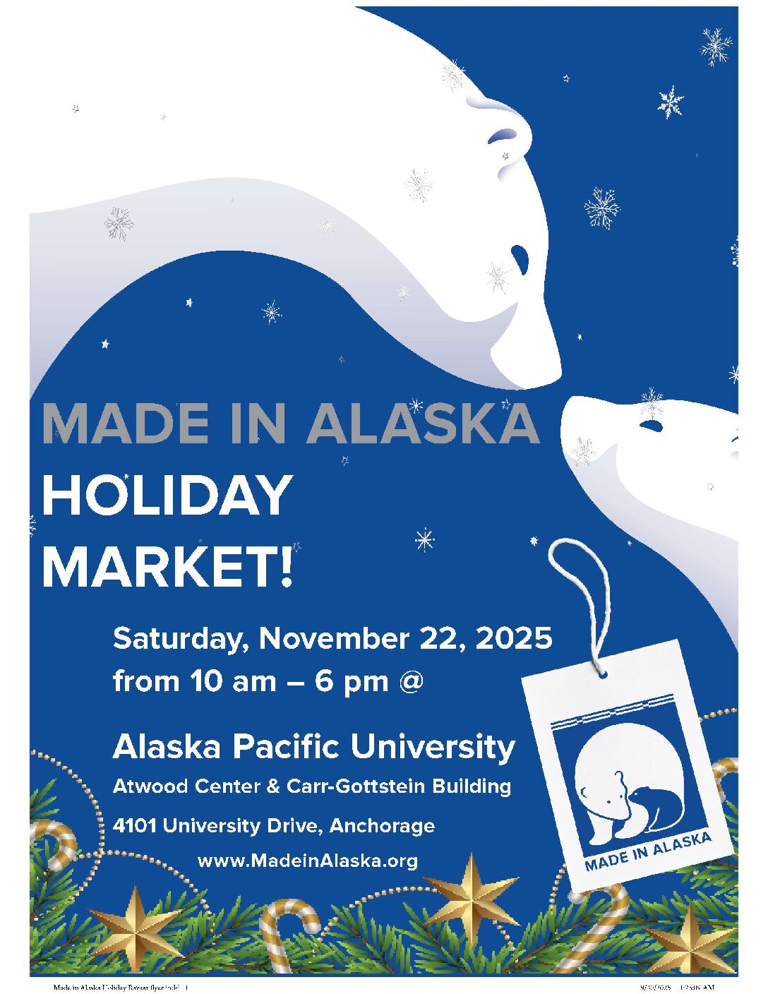 Join us to celebrate the creativity and craftsmanship of Alaska’s many talented artists and artisans! This brand-new event will showcase businesses from across the state selling their authentic Alaskan products, all certified through the official Made in Alaska Program.